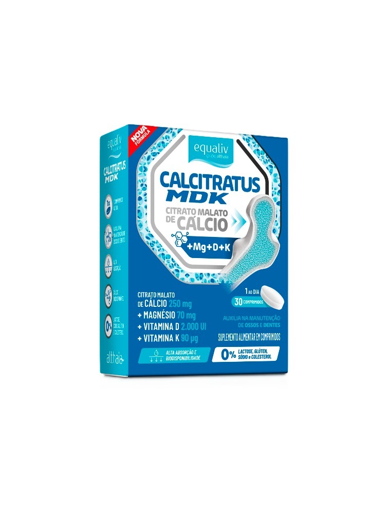 Equaliv Calcitratus é um suplemento composto por citrato malato de cálcio, vitamina D, vitamina K2 e magnésio. Formulação ideal para garantir a biodisponibilidade e absorção do cálcio adequadamente e de forma eficaz.