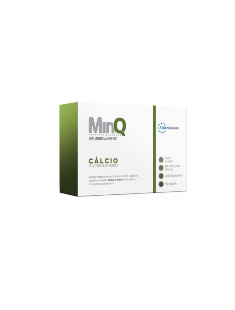 MinQ Cálcio é um suplemento alimentar formulado com o mineral quelato Citrato Malato de Cálcio da Albion® Minerals. MinQ Cálcio possui 250 mg de Cálcio e 2000 UI de Vitamina D3 que auxiliam na manutenção da saúde óssea. Apresentação: 30 comprimidos.
